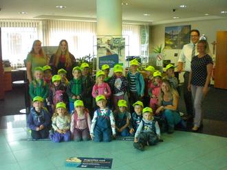 Bei einem Besuch der Ameisenbande des Waldkindergartens Inzell präsentierten sie den Mitarbeitern ihre neuen Capis, die von der Volksbank Raiffeisenbank Oberbayern Südost eG gesponsert wurden. Das gestickte Logo des Kindergartens prangt auf den Capis und mit schönem hellen grün strahlen unsere Waldkindergartenkinder und sind so schon von Weitem auf dem Weg zum Dorf sichtbar.