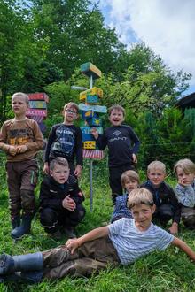 Durch einen Spalier von Eltern und Verwandten wurden unsere neuen ABC-Schützen symbolisch mit Schultüte und Malmappe in die Schulwelt entlassen. Ein kleines Vogelhaus mit Fingerabdrücken aller Kinder gab es als Erinnerung für jeden Einzelnen und als Erinnerung an ihre Zeit im Waldkindergarten hinterließen uns die 9 Ameisenkinder einen liebevoll gestalteten "Glückswächter".
