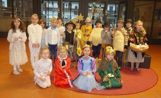 Zur Einstimmung auf das bevorstehende Weihnachtsfest führte die Klasse 1a unter Leitung von Lehrerin Lisa Koch ein musikalisches Krippenspiel vor. Mit dabei waren neben der Heiligen Familie auch viele Hirten, Engel, ein Sternträger und die Heiligen Drei Könige. Die Kinder trugen die dazu passenden Kostüme und Ausrüstung. Sie erhielten für Ihre Darbietung von allen Zuschauern den verdienten großen Applaus.