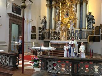 Pfr. Weinzierl beim Gottesdienst in der Kirche Maria Kirchental