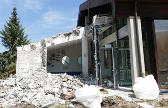 Inzell (we) – Es geht voran! Das Hallenbad in Inzell wird komplett saniert und dafür muss zunächst das ganze Gebäude angerissen werden. Lediglich die Kellerräume und die Innenbecken bleiben bestehen, die gesamte Gebäudehülle wird nach dem Abriss neu errichtet. Die Sauna bleibt von dem Umbau unangetastet und wird demnächst wieder öffnen.