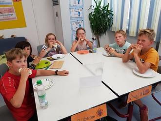 Das was die Schüler im Frühjahr angepflanzt hatten durfte nach der Ernte natürlich auch verspeist werden und es schmeckte richtig gut, wie man den Gesichtern entnehmen darf.