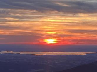 Nach dem gemütlichen Zusammensitzen auf der Terrasse mussten wir aber irgendwann doch wieder aufbrechen und bewunderten beim Abstieg noch den schönen Sonnenuntergang mit Chiemseeblick.