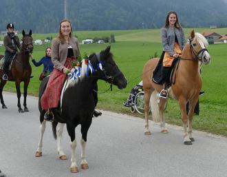Bestens gelaunt, endlich wieder am Michaeliritt mitreiten zu dürfen, waren die Inzeller Dirndl, gut erholt vom Vereinspreisplatteln am Vorabend.