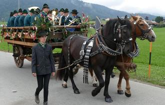 Die Musikapelle Inzell durfte auf einem Festwagen mitfahren und sorgte für die musikalische Umrahmung beim diesjährigen Michaeliritt.
