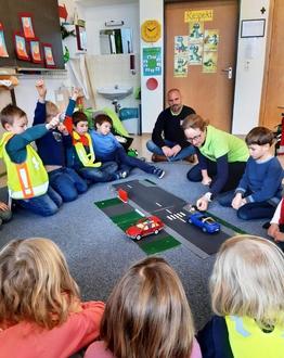 Die Erstklässler der Grundschule Inzell wurden zunächst im Klassenzimmer auf verschiedene Gefahren im Straßenverkehr vorbereitet.