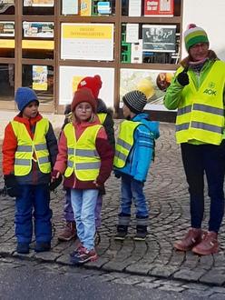 Den Kindern wurde genau erklärt, auf was sie beim Überqueren der Straße aufpassen müssen.