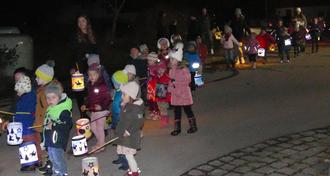 Voller Stolz zeigten die Kindergartenkinder auf dem Weg vom Kindergarten zum Schulhof ihre leuchtenden Laternen beim Martinsfest.