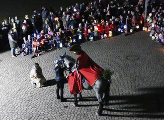 Inzell (we) – „Ich geh mit meiner Laterne und meine Laterne mit mir. Da oben leuchten die Sterne und unten leuchten wir“. Dieses Lied kennen sicher die meisten Kinder und Erwachsenen und es wird jedes Jahr beim Fest des Heiligen St. Martin gesungen. So auch heuer beim Martinszug des Inzeller Pfarrkindergartens St. Michael. Der lange Zug angeführt vom Heiligen Martin auf dem Pferd startete in diesem Jahr vor dem Kindergarten und führte bis zum Pausenhof in der Schule.