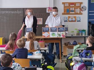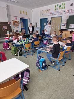 Bei den Getränken durften sich alle mit Wasser und Apfelschorle stärken. Auch hier lernten die Kinder, wann denn Limo oder Cola auch mal nicht so schlimm sind. In einer Fühlbox konnten die Kinder die versteckten Gemüse gut erkennen. Gemeinsam wurde noch die Lebensmittelpyramide beklebt, die im Unterricht weiter hergenommen wird. Jedes Kind bekam eine schöne Teilnehmerurkunde und eine tolle Brotzeitbox!