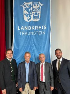 Bürgermeister Justus Pfeifer (li.) und Landrat Siegfried Walch (re.) dankten dem stellvertretenden Landrat Josef Konhäuser (2.v.l.) für seine Dienste und verabschiedeten Abteilungsleiter Florian Amann in den Ruhestand