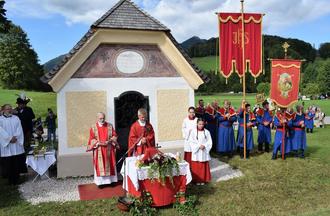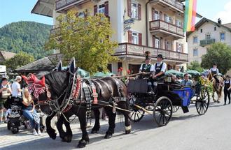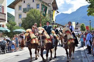 Es war schon eine Erleichterung für alle Verantwortlichen, als am Sonntagmorgen Glockengeläut und Böllerschüsse verkündeten, dass der Georgiritt stattfindet. Sichtlich froh und erleichtert war der Vorsitzende des Georgivereins, Johann Thullner, dass der Votivritt, dessen Ursprung auf ein Gelübde aus dem 16. Jahrhundert zurückgeht, durchgeführt werden konnte. Ein kleiner Gegenlohn für die aufwändigen Vorbereitungen. Zahlreiche Pferdetransporter kamen schon rechtzeitig zum Sammelplatz, mit Striegeln und Polieren wurde noch einmal alles auf Hochglanz gebracht, und dann konnte sich um 10 Uhr pünktlich der Georgiritt Richtung Ortsteil Wasen in Marsch setzen, denn der übliche Weg nach St. Valentin durfte aufgrund einer Anordnung des Landratsamtes Traunstein wegen Straßenbauarbeiten in der Seehauserstraße nicht gesperrt werden. Angeführt von Vorreitern mit der Standarte des Georgivereins, dem Kirchendienst und dem Spitzenkreuz folgten rund 130 prächtig herausgeputzte Pferde aus nah und fern mit Reitern. Die imposanten Rösser zogen Festwägen und Kutschen mit herrlichem Geschirr. Auf den Pferdegespannen war die Figur des hl. Georg, auf anderen Wägen saßen die Musikkapellen der „Miesenbacher“ und der „Rauschberger“, wieder ein anderer war mit den Mitgliedern der „Historischen“ in ihren alten Trachten besetzt und in den Festkutschen saßen die Honoratioren der Gemeinde, des Landkreises und des Pfarrgemeinderates sowie die Vertreter der Standestrachten. Den zahlreichen Zuschauern bot sich ein farbenprächtiges Bild. Den Feldgottesdienst vor der „Mühlbauern Kapelle“ zelebrierte Pfarrer Otto Stangl. Ihm zur Seite stand Diakon Sepp Eixenberger. Nach dem Festgottesdienst zogen alle Pferde am Altar vorbei und empfingen traditionsgemäß den Segen. Danach ging es wieder zurück in den Ort und die zahlreichen Besucher konnten alle Teilnehmer des Georgirittes noch einmal bewundern und nach Beendigung hatten sie die Möglichkeit, den anschließenden Georgitag mit den vielen Attraktionen, Darbietungen und Veranstaltungen nach Herzenslust zu genießen.