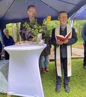 Pfarrer Bernd Reuther (li.) und Pfarrer Otto Stangl segneten den neu angelegten Kneipp-Rundweg.