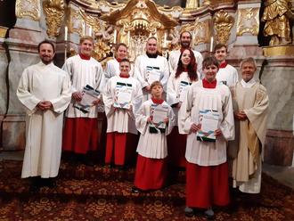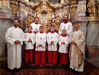 Dagegen erhielt die Ministranten-Schar wieder Zuwachs durch Verena Englisch, Sophia Garnreiter, Simon Weiß und Annalena Grafetstetter. Sie wurden von Maria Praha, Lena Haberlander, Kevin Poller und Fabian Westphal auf ihren Dienst vorbereitet. Symbolisch besiegelt wurde ihre Neuaufnahme mit der obligatorischen Mini-Medaille.