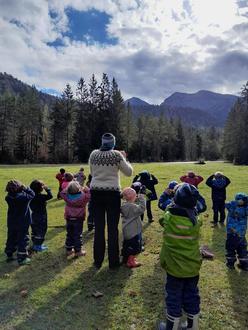 Am 18.10.2022 besprachen wir gemeinsam mit den Kindern, was bei einer Sonnenfinsternis passiert. Dazu zeigten wir ihnen verschiedene Bilder, die veranschaulichten, wie sich der Mond vor die Sonne schiebt. Unsere Kinder fanden dies sehr interessant, dass einige am nächsten Tag mit ihren Sonnenbrillen in den Waldkindergarten kamen, um dies zu betrachten. Allerdings benötigt man dafür spezielle Brillen, die dann nach ein paar Tagen von den Kindern ausprobiert wurden. Somit konnten wir den Kindern ermöglichen, dieses Phänomen anzuschauen.