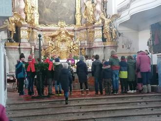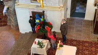 Am ersten Adventssonntag wurde in der Pfarrkirche ein Familiengottesdienst mit Adventskranzsegnung gefeiert. Die Kommunionkinder erklärten die Bedeutung des Adventskranzes: Der runde Kranz als Symbol für die Welt mit den roten Kerzen steht für die Nächstenliebe. Das Anzünden der Kerzen jede Woche ist also die Erinnerung, dass wir uns auf Weihnachten vorbereiten sollen und uns so das Licht der Hoffnung in unser Haus holen. Gemeinsam mit dem Stern haben sich die Besucher:innen des Gottesdienstes daran erinnert, was Weihnachten bedeutet. Die Weihnachtszeit soll auch eine Zeit der Nächstenliebe und vor allem auch eine Zeit für Menschen sein, besonders auch für die, die wir lieben. Dieses Gefühl von zusammen halten und zusammen sein, haben die Kinder auch beim gemeinsamen Vater Unser verdeutlicht.