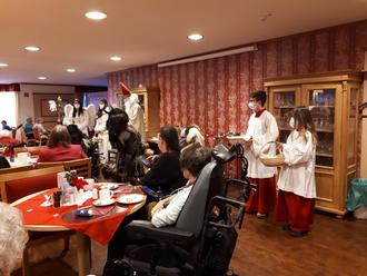 Vergangenen Freitag trafen sich 13 Ministrantinnen und Ministranten im Pfarrzentrum, um für die Bewohner im SenVital kleine Engel zu falten. Schnell hatten die Teilnehmer den „Dreh raus“ und so konnte eine beachtliche Stückzahl erreicht werden. Am 5. Dezember wurden sie dann mit dem Nikolaus und dessen Gefolge überreicht. Die Bewohner hatten sichtlich Freude an der Überraschung. Herzlichen Dank an alle Bastler und an Florian und Sonja; es ist schön, wenn ihr im Advent auch anderen Menschen eine Freude macht.
