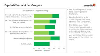 Ergebnisübersicht der Gruppen: Pro-Stimmen je Gruppenvorschlag