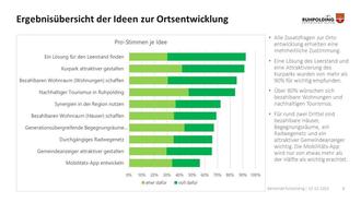 Ergebnisübersicht der Ideen zur Ortsentwicklung: Pro-Stimmen je Idee