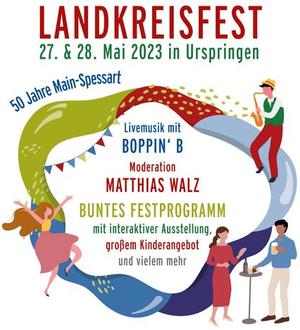 Der Landkreis Main-Spessart feiert mit seinen Bürgerinnen und Bürgern in Urspringen ein Fest anlässlich seiner Gründung vor 50 Jahren. Die Bürgermeisterinnen und Bürgermeister der Sinngrundallianz möchten gerne mit Ihnen gemeinsam dieses Fest feiern und laden Sie herzlich hierzu ein. Zum Festauftakt findet am Pfingstsamstag um 13.00 Uhr ein Festzug statt, bei dem alle Gemeinden des Sinngrunds möglichst stark vertreten sein möchten.