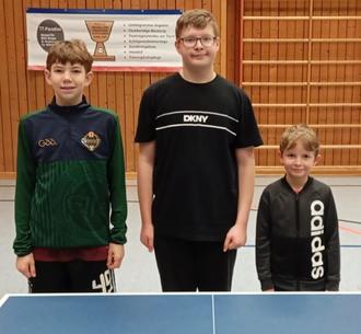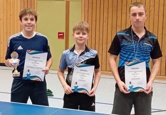 Die Vereinsmeister der Jugend B von links: Maksim Kusin (1.Platz), Maksymilian Kuza (2.Platz) und Konrad Putzke (3.Platz).