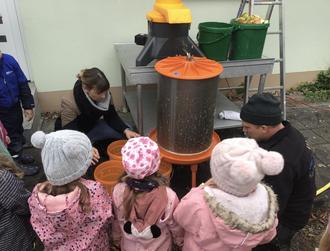 Unzählige Äpfel wurden gebraucht, erst dann floss der frischgepresste Saft in die mitgebrachten Flaschen. Ein köstlicher Lohn, schließlich waren die Kinder begeistert bei der Sache und packten bei allen Arbeitsschritten bis hin zum fertigen Apfelsaft kräftig mit an.