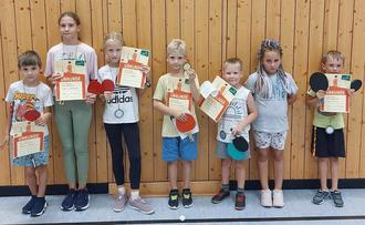 7 Kinder konnten am Ende des Ferienprogramms ihre Urkunden und Medaillen vom abgelegten Sportabzeichen in Empfang nehmen.