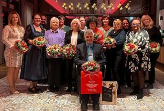 auf dem Bild von links nach rechts: Dorentine Topalli (Fortbildung Betreuungskraft), Helga Bolg, 2. Vorsitzende (25 Jahre), Armin Fukal-Erz (5 Jahre), Ulrike Klein (5 Jahre), Helene Effenberger (15 Jahre), Susanne Pommer (10 Jahre), Kosima Pohl (Fortbildung Betreuungskraft), Josef Knöpfle (5 Jahre), Christine Stegmann (10 Jahre), Anne Leuer (10 Jahre), Inge Kraus (30 Jahre), Brigitte Erz (5 Jahre), Mariola Trybus (20 Jahre) und Andrea Lehner (5 Jahre).