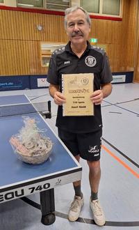 Josef Abold (Foto) für 750 Punkt- Spieleinsätze im Trikot des SV Unterknöringen. Das Gründungsmitglied der Tischtennis-Abteilung konnte neben einer Urkunde noch einen kleinen Präsentkorb von Abteilungsleiter Benjamin Findler in Empfang nehmen. Jeder Verein kann sich glücklich schätzen, so zuverlässige Akteure in seinen Reihen zu haben die wenn sie gebraucht werden jederzeit bei allen Arbeitseinsätzen zur Stelle sind, so Abteilungsleiter Benjamin Findler.