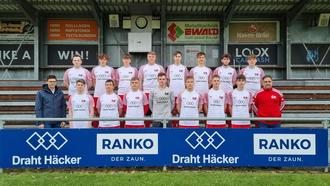 Auf dem Bild unsere U19 umrahmt vom Geschäftsführer von Draht Häcker, Patrick Pfänder (links) sowie vom U19 Trainer Ali Bozdemir. (rechts)