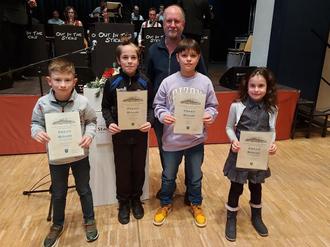 Bei der von der Stadt Burgau jährlich durchgeführten Sportlerehrung konnten vier Nachwuchskräfte der Tischtennis-Abteilung des SV Unterknöringen die geforderte Norm erfüllen. So wurden auf unserem Bild von links: Sascha Wiesner für den schwäbischen Meistertitel der Mini-Meisterschaft Jungen (Altersklasse 3) und für den 1.Platz der Bezirksmannschaftsmeisterschaft der Jungen U 13 ausgezeichnet. Alexander Rieb wurde Schwäbischer Meister der Jungen U 13 im Einzel, Bezirksmannschaftsmeister der Jungen U 13 und belegte den 3. Platz im Bayerischen Ranglistenturnier. Niklas Fink gewann wurde Bezirksmannschaftsmeister der Jungen U 13 und Valentina Meissner erhielt die Ehrung für den schwäbischen Meistertitel der Mini-Meisterschaft Mädchen (Altersklasse 3).