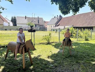 Dank der tatkräftigen Unterstützung des Fördervereins und der fleißigen Eltern, die immer wieder mit anpacken, können die Kinder nun nach Herzenslust auf ihren hölzernen Freunden reiten und klettern.
