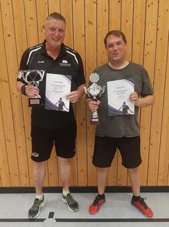 Rainer Frodl (links) war mit 220 Spielen der fleißigste Forderspieler und Andreas Saß (rechts) mit 9114 Punkten der erfolgreichste Forderspieler (Forderkönig). Beide konnten sich somit die Wanderpokale sichern.