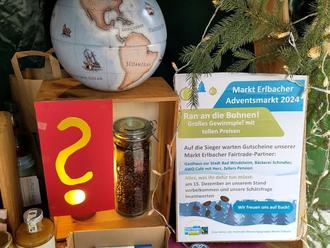 Die richtige Lösung wäre gewesen: 3.626 Kaffeebohnen. Die Schätzung, die am nächsten an dieser Zahl lag, war 3.714 Bohnen. Die Gewinner der vier Gutscheine wurden direkt benachrichtigt. Sie dürfen nun bei vier Markt Erlbacher Geschäften, die sich an der Fairtrade-Kommune beteiligen, schlemmen gehen: Gasthaus zur Stadt Bad Windsheim, Bäckerei Schindler, AWO Café mit Herz und Zellers Pension. Herzlichen Glückwunsch!