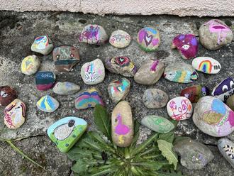 Ca. 20 Kinder von 4-9 Jahren haben 36 Steine bemalt die sie am Marktfest als Gruppe angelegt haben.