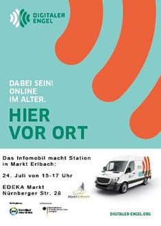 Der Digitale Engel vermittelt (älteren) Menschen praxisnah, persönlich und vor Ort, wie die täglichen Abläufe und Gewohnheiten durch digitale Anwendungen bereichert und erleichtert werden können. An dem Infomobil können Sie sich kostenlos informieren, wie man das Internet, das Smartphone oder Tablet nutzt, wie Videotelefonie funktioniert oder wie man Kurznachrichten verschickt. Alle Fragen sind willkommen. Kommen Sie gerne vorbei!