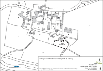Der Geltungsbereich des 2. Änderung der Innenbereichssatzung Haidt umfasst eine ca. 0,3 ha große Teilfläche aus dem Flst. 523, Gemarkung Siedelbach.