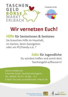 An die Befragung anknüpfend möchte ich Sie auf das wieder gestartete Angebot der Taschengeldbörse Markt Erlbach hinweisen.