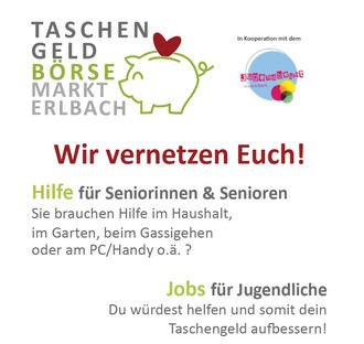 Falls Sie Unterstützung im Haushalt, im Garten, mit dem Handy/Tablet suchen, finden Sie dies bei der Taschengeldbörse. Bei Interesse freue ich mich, wenn Sie, liebe Seniorinnen und Senioren, sich bei mir melden und auch Ihr, liebe Jugendliche, Kontakt aufnehmt.