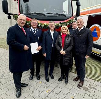 Das neue Katastrophenschutzfahrzeug des Bundes, ein SW-Kat S, welches in unserer Feuerwehr nun stationiert ist, wurde am 09.11.2024 auf einer großen Festveranstaltung mit Innenminister Joachim Hermann in Gunzenhausen mit vielen weiteren Fahrzeugen in Betrieb gesetzt.