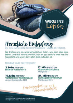 | 19.00 Uhr | Ökumenisches Friedensgebet, diesmal am Wertstoffhof in Markt Erlbach |