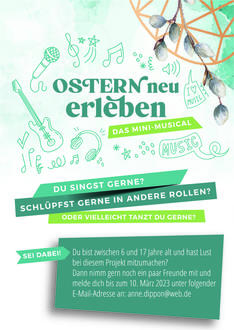 | 16.30 Uhr | Gottesdienst "Kinderleicht" |