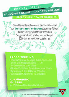 | 09.00 Uhr | Krabbelgruppe, Gemeindehaus Markt Erlbach |