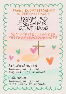 Der Gottesdienst zum Weltgebetstag in Fischach beginnt um 17.00 Uhr im Pfarrheim Adolph Kolping. Im Anschluss an den Gottesdienst ist wieder Beisammensein bei Tee und Gebäck. Das Vorbereitungsteam lädt dazu ganz herzlich ein.