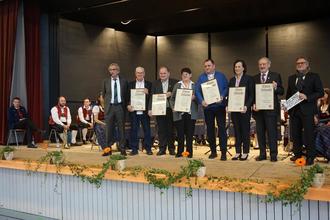 Nach jahrelanger Pause lud die Marktgemeinde Fischach wieder zum Neujahrsempfang in die Staudenlandhalle. Um 11 Uhr füllten sich die Halle und auch das Buffet. Die Marktmetzgerei Roman Hauser, die Pizzeria Martini und die Pizzeria Bains wie auch die Bäckerei Max Köbler und „Da Roberto“ hatten Leckereien vorbereitet. Unter der neuen Leitung von Patrick Egge eröffnete der Musikverein Fischach mit dem „Kaiserin-Sissi“-Marsch. Bürgermeister Peter Ziegelmeier schlug nun in seiner Rede den Bogen melodischer Bewegung zum Auf und Ab, zu den politischen Bewegungen unserer Zeit. Trotz aller Krisen und Rückschläge gebe es keinen Grund zu Verzweiflung und Resignation. „Wir können Krise, wir haben den Laden am Laufen gehalten“, betonte er und führte die Erfolge und Planungen der Marktgemeinde aus: Verbindlichkeiten wurden in beachtlicher Höhe abgebaut, Neubaugebiete ausgewiesen, neue Wohnungen erstellt, ein neues Gewerbegebiet soll ebenso kommen wie ein Nahwärmenetz und die Überdachung des Busbahnhofes mit installierter Photovoltaikanlage. Den Ausbau erneuerbarer Energie bezeichnete Ziegelmeier als Zukunftsaufgabe. Ferner wird die Gemeinde die gesetzlich geforderte Ganztagsbetreuung der Schulkinder und Plätze für Krippen- und Kindergartenkinder bereitstellen. Auch der Betrieb des Hallenbades konnte mit geringen Einschränkungen weitergeführt werden. Das alles sei auch dem verantwortungsvoll handelnden Marktgemeinderat zu verdanken, der die Steuergelder mit Augenmaß und Weitblick verwaltet. Hier wurden für langjährige Tätigkeit folgende Mitglieder mit der Bürgermedaille des Marktes ausgezeichnet: Josef Abold, Franz Fischer, Marianne Koos, Jürgen Ohler, Ines Penzhorn, Dr. Peter Wunderer und Barbara Wassermann. Seit 1991 war Roland Bröll als Marktbaumeister für viele Projekte des Marktes Fischach verantwortlich, darunter für den Bau der Staudenlandhalle und des Naturfreibades. „Ihm hat die Gemeinde viel zu verdanken“, betonte der Bürgermeister und verabschiedete den leitenden Mitarbeiter in den Ruhestand.
