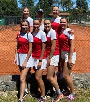 Die Meistermannschaft Damen - TSV Fischach: (hintere Reihe:) Lucia Renz, Ramona Fischer, Elena Riendl, (vorne:) Leonie Sirch, Hannah Baur, Lucia und Lisa Fischer