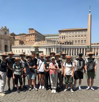 Wie 3300 andere Ministranten aus dem Bistum Augsburg waren auch wir, eine Gruppe der PG Fischach auf der Ministrantenwallfahrt in Rom dabei. 14 Ministranten und zwei Betreuer haben um 21:30 Uhr mit dem Bus die lange Reise nach Rom angetreten. Pfarrer Schrom hat uns davor noch den Reisesegen gegeben. In Strassberg sind die Ministranten aus Bobingen mit dem Busbegleiter zugestiegen. Gegen elf Uhr sind wir im Hotel Radisson Blu angekommen. Bis zum Einchecken ins Hotel war noch etwas Zeit und so haben wir uns in der Stadt etwas umgesehen und sind direkt zum Petersplatz mit der U-Bahn und Metro gefahren. Um 18:00 Uhr hat der Eröffnungsgottesdienst in der Lateranbasilika begonnen, bei dem auch zwei von unserer Gruppe im Projektchor mitgesungen haben. Die Temperaturen lagen immer zwischen 30 und 40 Grad und da durften Hüte, Sonnencreme und ausreichend Trinken nicht fehlen. Nach einem ausgiebigen Frühstück am Dienstag hat unsere Gruppe um neun Uhr eine Führung rund um das Antike Rom bekommen. Neben vielen Informationen über das Kolosseum und dem Forum Romanum sind wir auch auf den Kapitolshügel gestiegen. Eines der größten Highlights war bestimmt die Papstaudienz um 18:00 Uhr auf dem Petersplatz. Vorab gab es ab 16 Uhr ein Vorprogramm, sozusagen als Warm Up, bis Papst Franziskus eintraf. Ein besonderer Moment für uns war, als der Papst mit seinem Papamobil durch die Reihen gefahren ist. Die Audienz war ein besonderes Erlebnis, da unter anderem auch das größte Weihrauchfass der Welt aus dem Bistum Augsburg im Einsatz war, und der Papst sogar ein paar Sätze auf Deutsch den Ministranten verkündete.