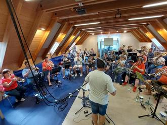 Vor allem mit ihrer ersten CD-Produktion „Jubiläumsgrüße der Aretsrieder Musikanten“ erfüllen sich die gut 30 Musikerinnen und Musiker aus dem kleinen Fischacher Ortsteil zu ihrem 40. Geburtstag einen langgehegten Wunsch. Anfang September wurde der Probenraum im örtlichen Vereinsheim – gedämmt und gepolstert – in ein High-Tech-Tonstudio umfunktioniert. Ein ganzes Wochenende lang – von Freitagabend bis Sonntagnachmittag – wurden die elf Titel eingespielt. Dazu war Tonmeister Lukas Bruckmeyer mit seinem mobilen Tonstudio nach Aretsried gekommen. Mit dem Kapellmeister („Lukas Bruckmeyer und seine böhmischen Kameraden“) verbindet die Aretsrieder inzwischen eine enge Freundschaft. War es doch Bruckmeyer, der nach einem vom Musikverein Aretsried organisierten Konzert seiner Spitzenblaskapelle in Fischach als Dankeschön die „Aretsrieder Musikantenpolka“ komponiert hat. Selbstredend, dass die Vereinshymne ebenso auf der neuen CD vertreten ist wie knackige Polkas und bekannte Märsche aus dem umfangreichen Repertoire der Aretsrieder Musikanten. Allesamt Lieblingstitel der Kapelle, die auf der kleinen silbernen Scheibe mit viel Leidenschaft und Herzblut zum Klingen gebracht werden.
