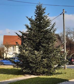 Alle Jahre wieder erstrahlt ein schöner Christbaum am Dorfplatz in Aretsried.