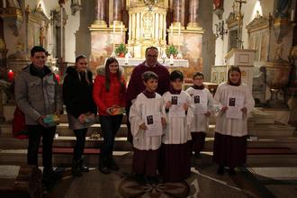 Gleichzeitig wurden drei Minis verabschiedet. Zwei von ihnen brachten es auf die stattliche Zahl von 7 Ministrantenjahren.